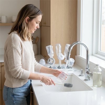 - Intégrez le nettoyage des biberons à votre routine après chaque repas